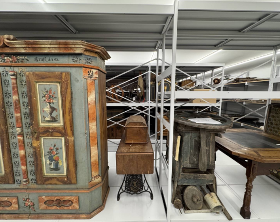 Das Museumsdepot der Stadt Bludenz hat eine turbulente Vergangenheit hinter sich. Nach mehreren Stationen in ungeeigneten Depot- und Lagerräumen befindet sich das Kulturgut der Stadt bzw. des Stadtmuseums Bludenz nun in den neuen Kellerräumlichkeiten der VS-Mitte. Mit geeigneten ausziehbaren Bilderwänden, platzsparenden Rollregalen, Planschränken für Großformatiges sowie Lastregalen für Schweres können die Objekte nun effizient und schonend gelagert werden. Als Schaudepot gedacht und konzipiert, wird durch das neue Depot eine Besichtigung der Sammlung möglich.