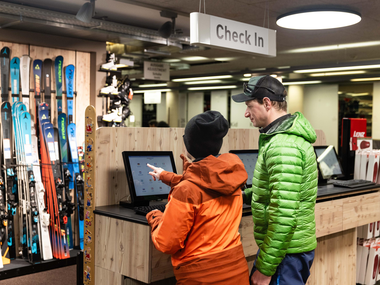 Mit deiner gewünschten Wintersportausrüstung die winterliche Bergwelt erkunden.