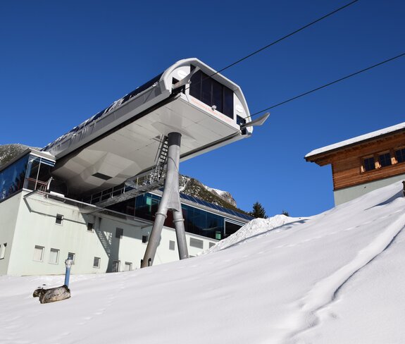 He reports that the cable car was built in 1955. Visitor numbers were good in the beginning, but the predicted figures could not be achieved by far in the following years. In 1970, the closure of the cable car was under discussion, but the municipality of Nüziders and the town of Bludenz provided considerable financial resources to keep it running. Thank god! After the gondolas were replaced in 1992, it was discovered in 1999 that the suspension cables also needed to be replaced. As a result, the town of Bludenz and the municipality of Nüziders sold the lift to the Nova Bergbahngesellschaft, but subject to certain conditions. The company modernized the lift and built today's Alpengasthof Muttersberg. The Silvretta-Nova Bergbahnen-Gesellschaft finally took over the operating guarantee. However, around ten years later, they decided to pull out of the Muttersberg. The story of the financially troubled cable car continued... However, the love of the locals for the Muttersberg saved the cable car, as it came into private ownership. Four citizens from Bludenz and Nüziders stood up for it - one of them is the current partner and operational manager Johann Bandl, who is sitting opposite me right now.