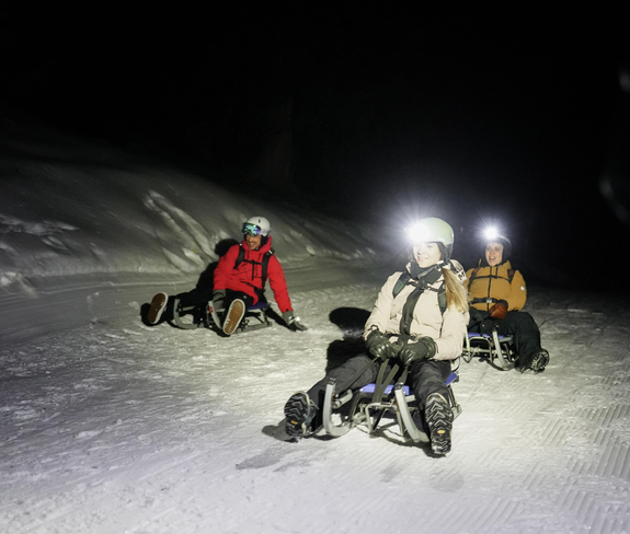 Sleds must be rented at the village station (free for participants). They will be reserved there under the respective name. The night tobogganing safari can only take place with sufficient snow conditions!