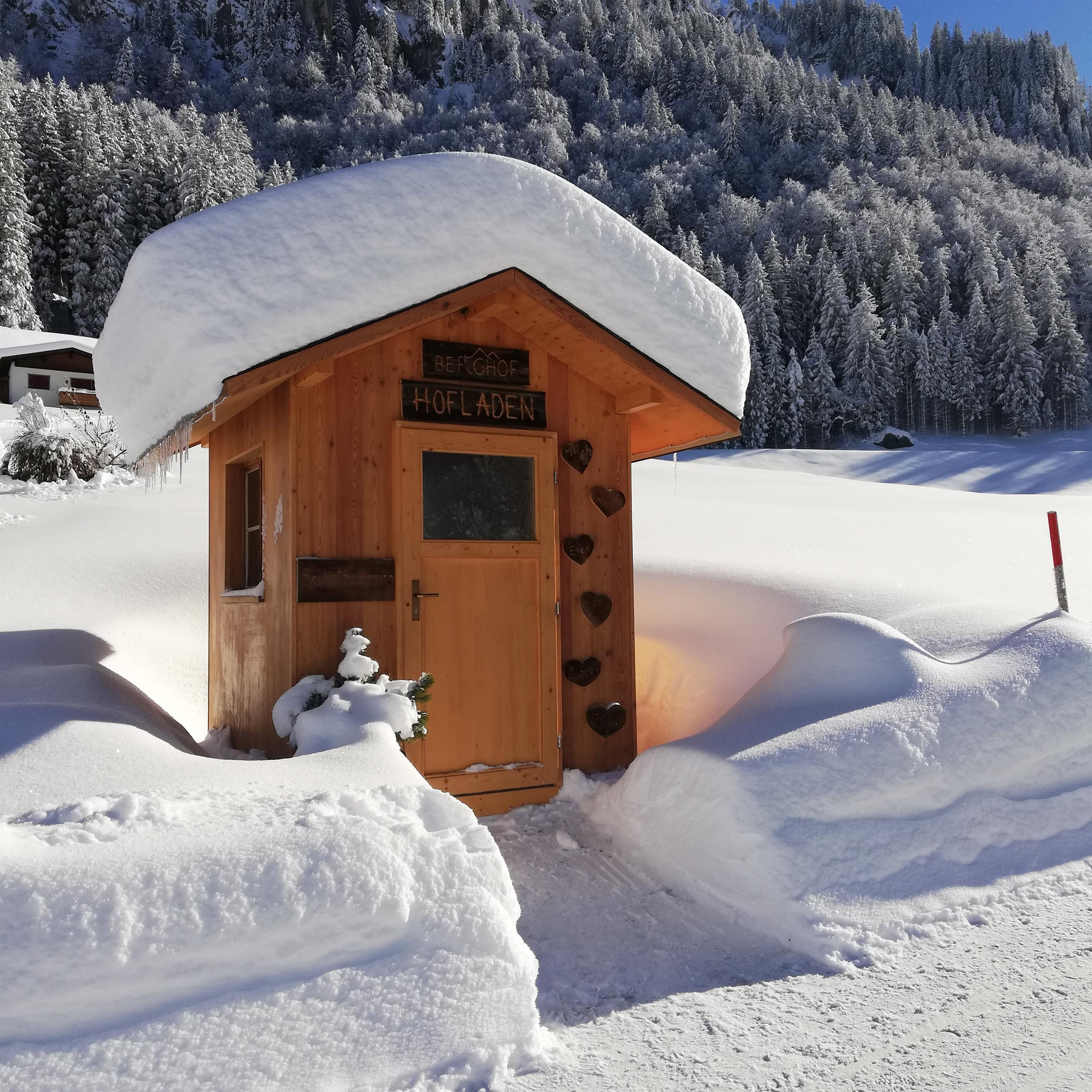 z.B. Milch, Würste, Eier, Honig, Butter und Joghurt.