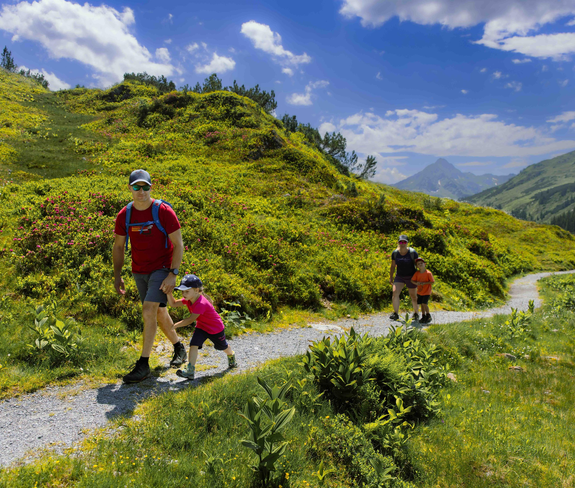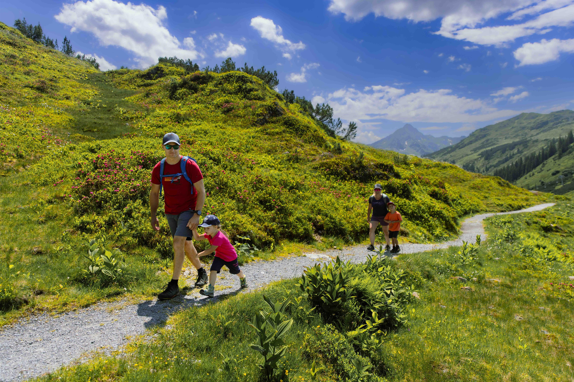 gutes Schuhwerk, wetterangepasste Kleidung, Sonnenschutz, gefüllte Trinkflasche, Sitzunterlage