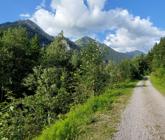 Vom Ausgangspunkt wanderst Du über die Forststraße Sonnenkopf bis zur ersten großen Kehre, dort geht es dann auf markiertem Fußweg (kleiner Wiesenweg) talauswärts weiter durch die Schattenmähder. Es eröffnet sich ein eindrucksvoller Blick auf die Klostertaler Berge. Vorbei geht es an einem Stall, wo der Weg wieder breiter wird. Am Ende des Weges geht es rechts auf der Forststraße weiter. Vorbei am Bärentobel und am Metzler Maisäß. Etwas versteckt unter der Hütte beim Waldrand führt ein kleiner Wiesenweg hinab zur Parzelle Garmauscha. Dem Weg folgen und am Ende rechts die Forststraße nehmen, welche dann in eine asphaltierte Gemeindestraße übergeht. Ein kleiner Weiher auf der rechten Seite lädt zum Verweilen ein, bevor es auf der Straße zur Talsohle weitergeht. Unten angekommen geht es nochmal rechts auf den Rad-/Wanderweg und entlang der Alfenz taleinwärts zurück zur Talstation der Sonnenkopfbahn.