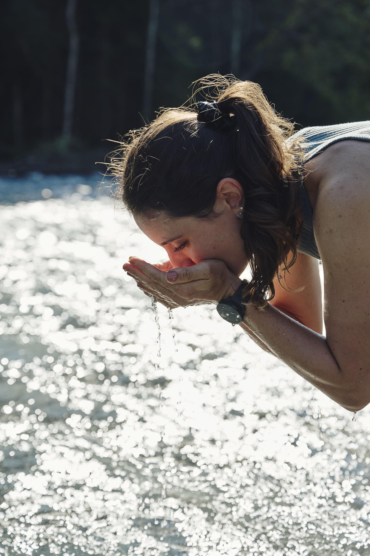 2. Station Trinkwasserbrunnen beim Gemeindesaal Maschol, Wald am Arlberg mit Infos allgemein zum Wasserkreislauf und zur europäischen Wasserscheide. Besonderheit dieses Wassers (vom Formarinsee, Anreicherung) Verkostung des Wassers/Präsentation KTL Wasserflaschen.