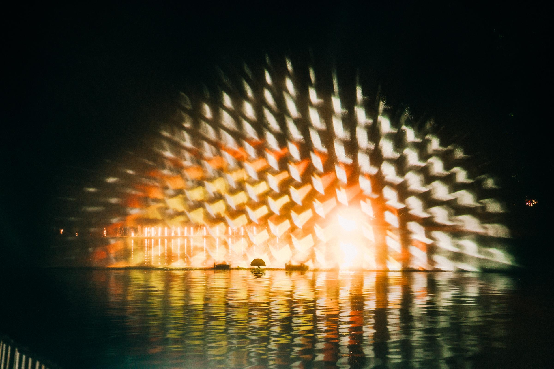 Before, between, and after the water shows, music, as well as a selection of food and drinks, create an atmospheric experience.