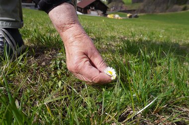 With a small basket in her hand and a friendly smile on her face, Silvia Fritz welcomes me to her home in Wald am Arlberg on a sunny spring morning. "Today we are collecting various wild herbs for a colorful spring salad," she informs me and we walk together to the large meadow just a few meters behind her house.
