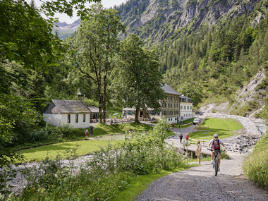 Die 3-Tages-Tour beginnt bei der Kirche in Buchboden (910 m) und führt über Bad Rothenbrunnen (1.010 m) weiter bis zur Gadenalpe (1.317 m). Von der Gadenalpe geht es links stetig ansteigend vorbei an der Diesnerbergalpe (1.626 m) auf das Mutterwangjoch (2.025 m). Von dort führt der Weg entlang dem Europäischen Fernwanderweg Nr. 4 (E4), über den Gamsboden (2.066 m) und das Gamsbodenjoch zur Göppinger Hütte (2.245 m). Dort ist die erste Übernachtung der Tour.