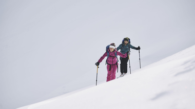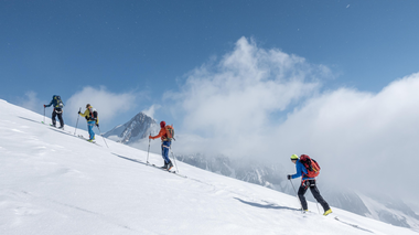 Sicherheit geht vor: Skitouren sollten ein gemeinschaftliches Erlebnis sein. Allein auf Tour zu gehen, ist nicht ratsam. Und gemeinsam macht dies auch mehr Spaß. Wer gerne mit professioneller Begleitung auf Tour geht, kann sich von den Skitourenführer:innen im Großen Walsertal guiden lassen.