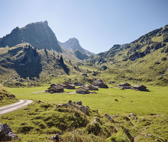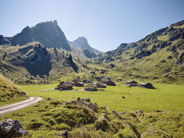 On the second day, the hike leads over the Sättele in the direction of Laguzalpe. When you reach the road, turn right and hike over the Garmilsattel to the Oberpartnomalpe. After a leisurely stop at the Breithornhütte, the trail continues below the Breithorn to Alpe Steris. Here you can also take a break at the Sterisstüble. The last part of the hike leads back to Marul via the Stafelfederalpe.