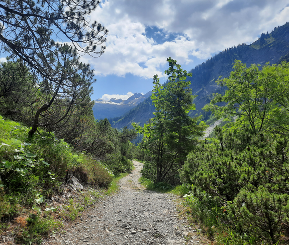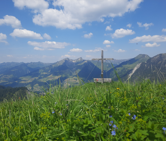 The tour starts at the car park at the Lutz. From here, take the forest road into the Hutlatal valley in the direction of Wangspitze/Rindereralpe. At the level of the Rindereralpe, the path branches off into a hiking trail. First the trail leads across a short alpine meadow and then up in the forest towards Wangspitze. Halfway up, you come to a large mountain meadow and from there the trail leads in several serpentines up to the Wangsattel. At the Wangsattel, the view opens up into the biosphere park core zone "Gadental". It takes about 15 minutes to reach the Wangspitze from the Wangsattel. At the 1,873 metre high summit you can enjoy a sensational panoramic view of the Großes Walsertal and the Lechquellen Mountains.